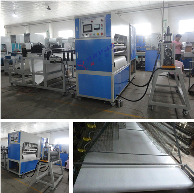 養(yǎng)殖傳送帶高周波熱合機(jī),用電子管自激震蕩器產(chǎn)生一個高頻電場施加在電極上,被加工塑料在上、下電極間的高頻電場作用下,其內(nèi)部分子產(chǎn)生熔化現(xiàn)象而自身產(chǎn)生熱量,在壓力的作用下達(dá)到熱熔的目。